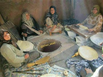 پخت نان شب عید از جمله فعالیت های بانوان روستای خان آباد از قدیم تا به حال است.در گذشته روستائیان تمام مایحتاج نان خود را طبخ می كردند.در واقع زنجیره تولید گندم تا پخت نان (شامل كشت،داشت و برداشت گندم به عنوان ماده اصلی پخت نان، آسیاب كردن گندم و در نهایت تولید نان) توسط مردم روستا انجام میشد.